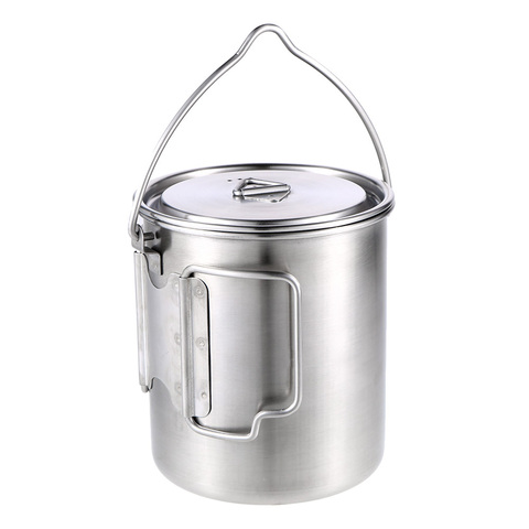 1100 मिलीलीटर टाइटेनियम पॉट अल्ट्रालाइट पोर्टेबल हैंग पॉट और फोल्डेबल हैंडल आउटडोर कैंपिंग बैकपैकिंग बैकपैकिंग