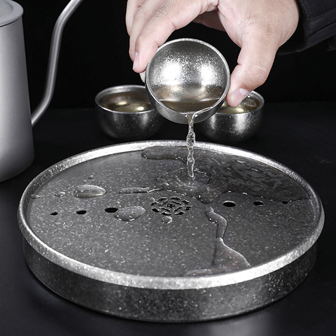 Титановый поднос для чая Gongfu с подносом для хранения воды Круглый Китайский стиль идеально подходит для дома, офисного чая