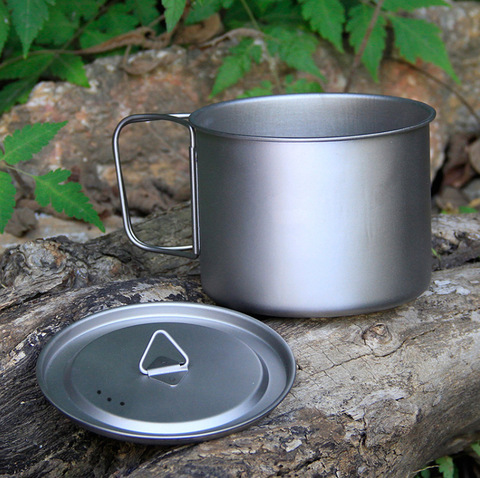 超軽量750mlチタンカップとポータブルポット折りたたみ式ハンドル付き屋外キャンプクライミングと水マグ使用